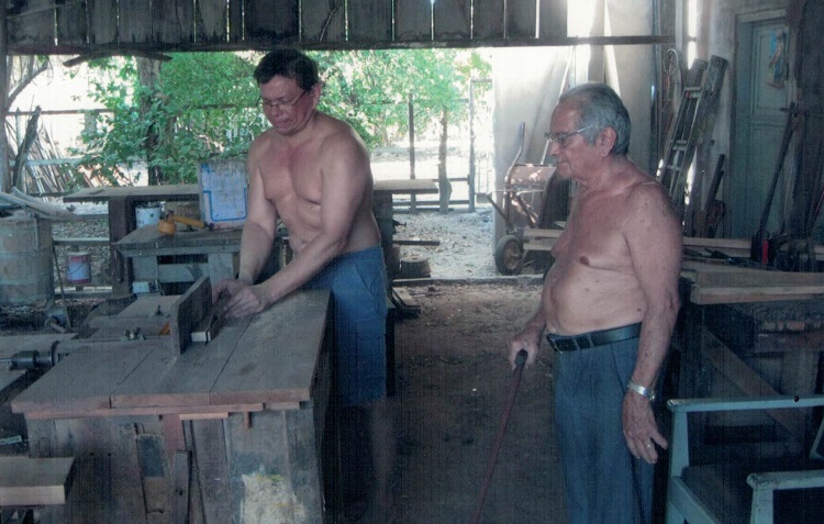 Elias Neto é observado pelo pai na marcenaria da família – Foto: acervo pessoal