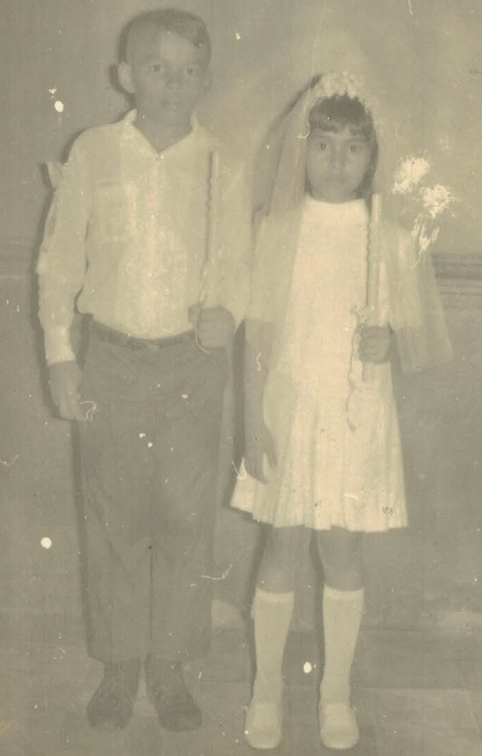 1977. Na foto acima, o jovem como ator. Foto 3. 1966.   Primeira comunnhão de Elias Neto e sua irmã Elizabete
