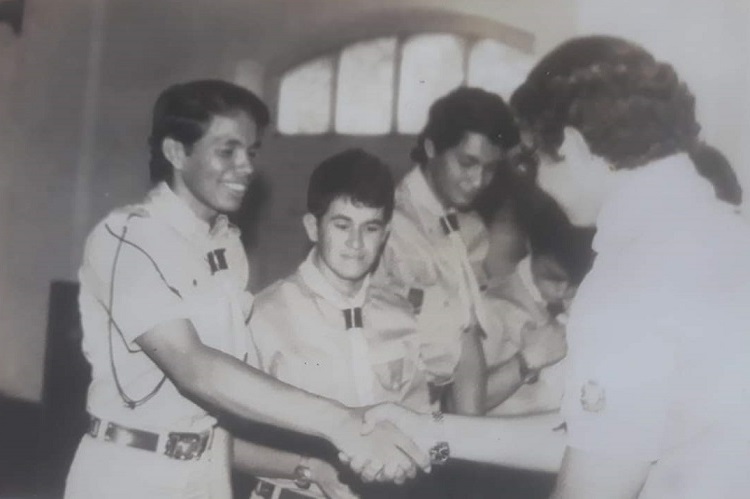Elias Neto, na adolescência, integrou o grupo de escoteiro-mirim. Ao lado, está o ex-vereador, Wilson Bosco Palhinha de Oliveira, sob o comando de Sebastião de Paula – Foto: acervo de Beth Dutra