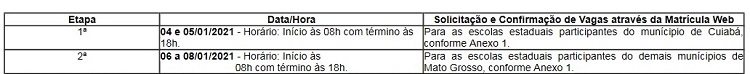 O pedido de solicitação para novas matrículas nas escolas estaduais de Cuiabá será iniciado na primeira semana do mês de janeiro de 2021. O processo é organizado em duas etapas.