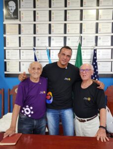 Atual presidente do Rotary Club de Cáceres, Ailton Aparecido Moreira entre o rotariano Ari Scavassa, 83 anos e o mais