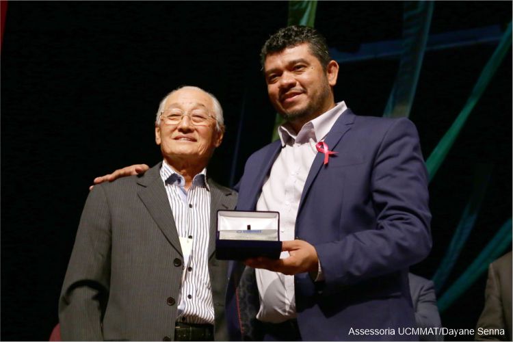 O vereador Sato sendo homenageado pela União das Câmaras Municipais de Mato Grosso, como o vereador mais idoso em atividade