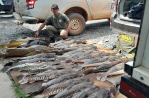 Durante patrulhamento terrestre próximo à comunidade Mangueiral, em Várzea Grande, os agentes de fiscalização da Fauna, com o apoio da Polícia Militar, encontraram 356,670 kg de pescado ilegal das espécies pintado, cachara e jaú, no interior de um veículo. O pescado apresentava sinais característicos de pesca predatória e estava sendo transportado pelo infrator no momento da abordagem.